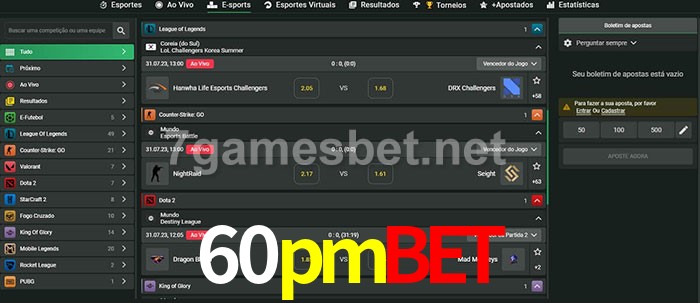 O 60pmbet oferece uma grande seleção de opções de apostas em e-sports com probabilidades competitivas